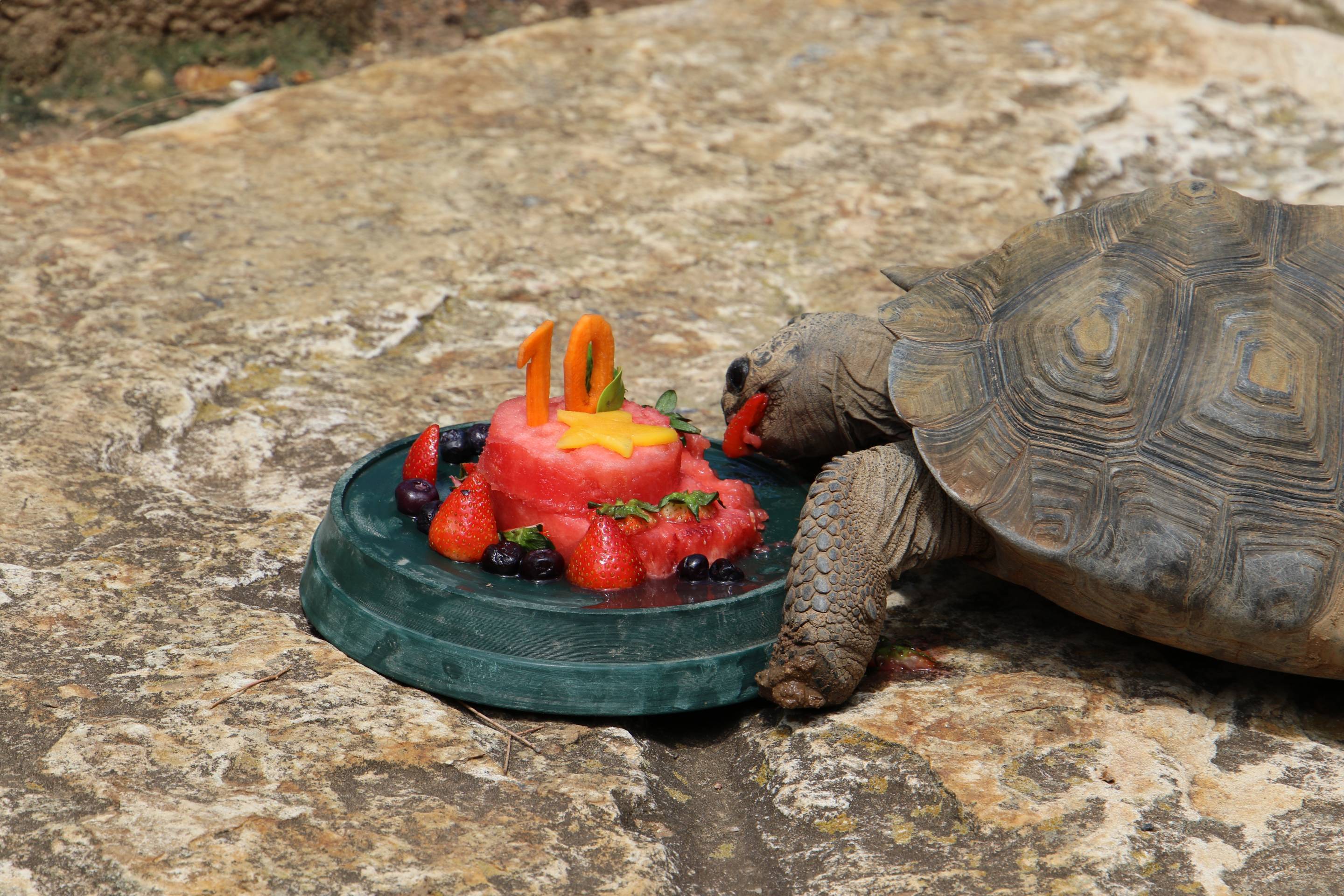 “NJ loves his fruit and the Galapagos Tortoise only get these types of food as a treat, so he will no doubt devour his fruit birthday cake,” said Amy.