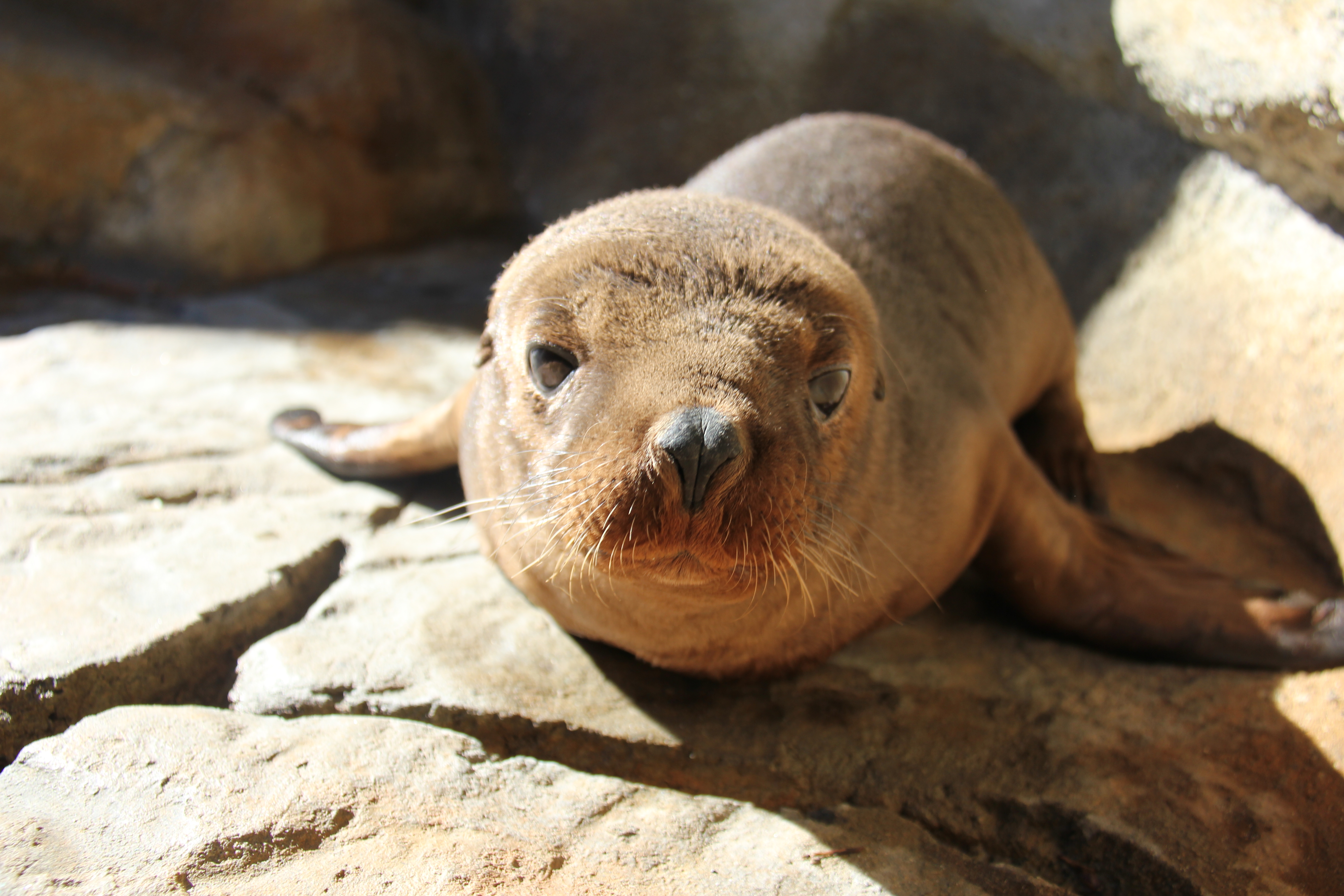 Sea-lions were hunted in the 1800s with their populations falling to very low numbers when this stoped in the 1920s. Despite now being protected, numbers have not re-bounded and wild sea-lions often become a by-catch of fisheries or become entangled and fatally injured by marine debris.
