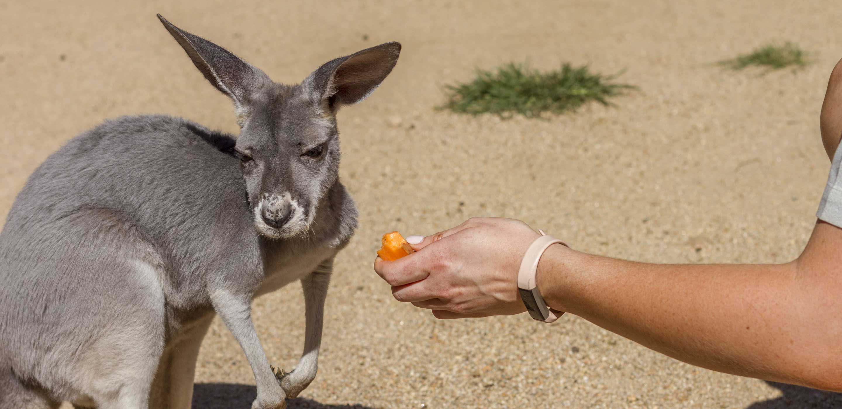 At Taronga Zoo Sydney, we aim to get rehabilitated animals back in the wild as soon as possible, such as the Swamp wallaby found on the Sydney Harbour Bridge earlier this year. However in other instances, reintroduction to the wild is not possible – and this will be the case for the little kangaroo joey being cared for at Taronga Zoo Sydney. Although the joey is too young to know how to forage for food in the wild, she is making a strong recovery in leaps and bounds. Keepers are gradually introducing her to our existing mob of kangaroos in our Backyard to Bush precinct, and she can be seen by our guests in coming months.