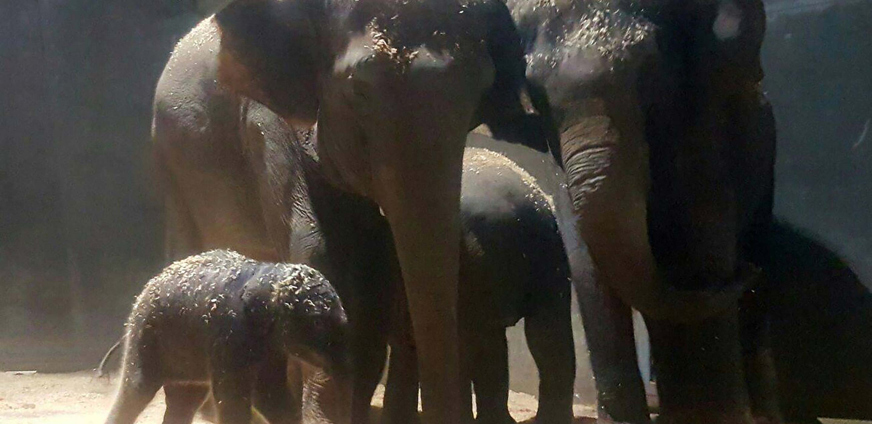 There was a lot of moving around from Porntip and more posturing, pushing and stretching. It was early morning, Christina went to have a nap in her car, and Porntip lay down shortly after at around 2am, much like her routine on previous nights, and appeared to go to sleep. Surely that couldn’t be it. Then at 3:01am she abruptly sat up and began to posture and stretch. It was hard to see from the camera angle but Greig and I were trying to work out if we could see a bulge under the tail or not, as this is what you will see immediately prior to birth. At that moment Christina came back in the door as if she had a premonition. It was definitely about to happen and we all got our phones out to try and call everyone on the team to come in.
