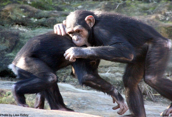 It may be winter here in Sydney but that’s not stopping the chimp family from enjoying the great outdoors….especially the younger members of the group, Sule and Sembe.Keepers and visitors alike frequently stop to watch the antics of these two cheeky chimps as they show off their acrobatic skills on the ropes and climbing structures. A game of tag or tips is usually instigated by Sembe who’s not only older than Sule by five weeks but also has unusually long limbs for her size and can easily out-run little Sule!The giant hammock situated on the far right-hand side of the exhibit serves as a fantastic emergency getaway should chasing games get a little too heated…and of course both infants will eventually run back to mum for some comfort and a cuddle.Elderly chimp, Lulu (60), on the other hand prefers to find a patch of winter sun and soak up the warm rays. She does however look on as the younger members of the group dash about excitedly. At times you would swear that her lips are curved at the corners in a smile, perhaps conjuring up distant memories when she too was a young spritely chimpanzee.Diane, Primate Keeper