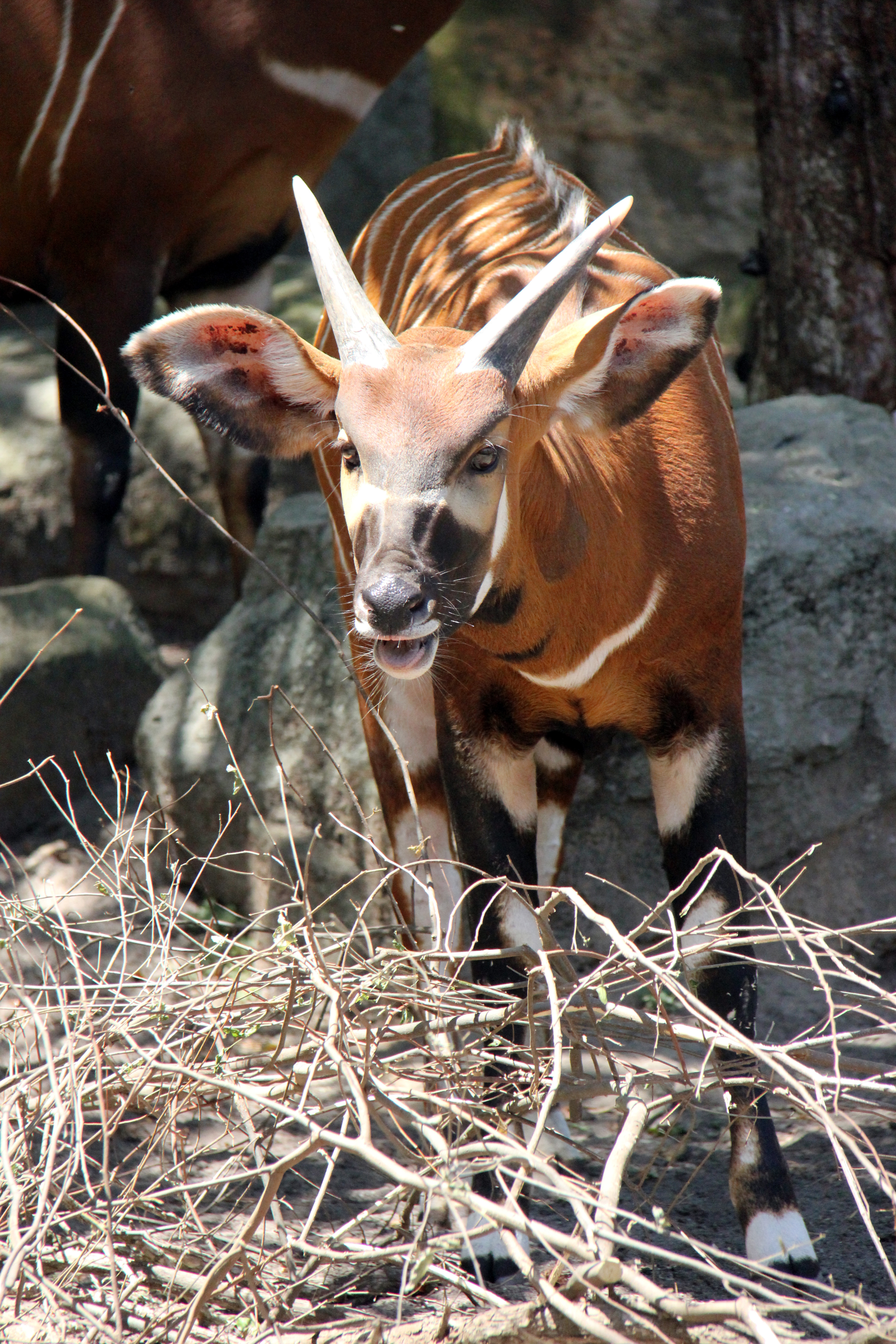 Eastern Bongo are a large species of forest-dwelling antelope native to the central highlands of Kenya. There are only around 100 of them left in the wild, making them critically endangered.